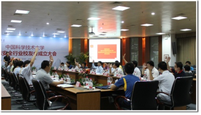 信息安全行业校友会筹备处负责人俞能海教授介绍了校友会筹备情况。大会讨论并原则通过了《中国科学技术大学信息安全行业校友会章程(草案)》,选举裴定一校友为信息安全行业校友会首任会长,俞能海校友为首任秘书长。