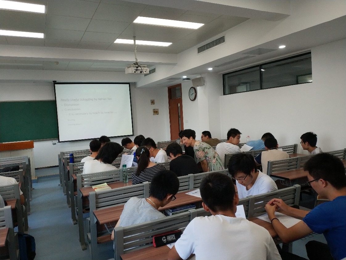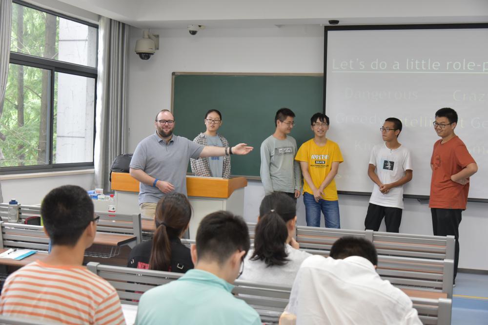 该课程以“语言输出”为目标导向,重点面向2017级拔尖计划英才班学生。来自美国、英国、波兰等不同国家的外籍教员和大学英语和研究生课程组的中国教师,携手营造沉浸式英语交际环境,通过主题讲授与实际语言应用相结合的方式,让同学们在语言应用中体验英语学习的乐趣,提高同学们跨文化交际能力,增强用英语进行有效沟通的信心。