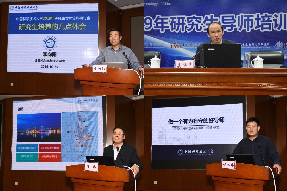 10月25日,我校在东区师生活动中心五楼报告厅举办2019年研究生导师培训研讨会。130余位研究生导师参加了本次培训研讨会,其中中国科学院合肥物质科学研究院、金属研究所、长春应用化学研究所、苏州纳米技术与纳米仿生研究所、苏州生物医学工程技术研究所、紫金山天文台以及附属第一医院的导师占三分之二。在研讨会开始前,研究生导师前往东区操场参观学校体育运动大会开幕式,感受新时代中国科大师生的饱满精神与昂扬斗志,加强了校园文化的交流,增强了文化自信。培训研讨会由杨金龙副校长主持。