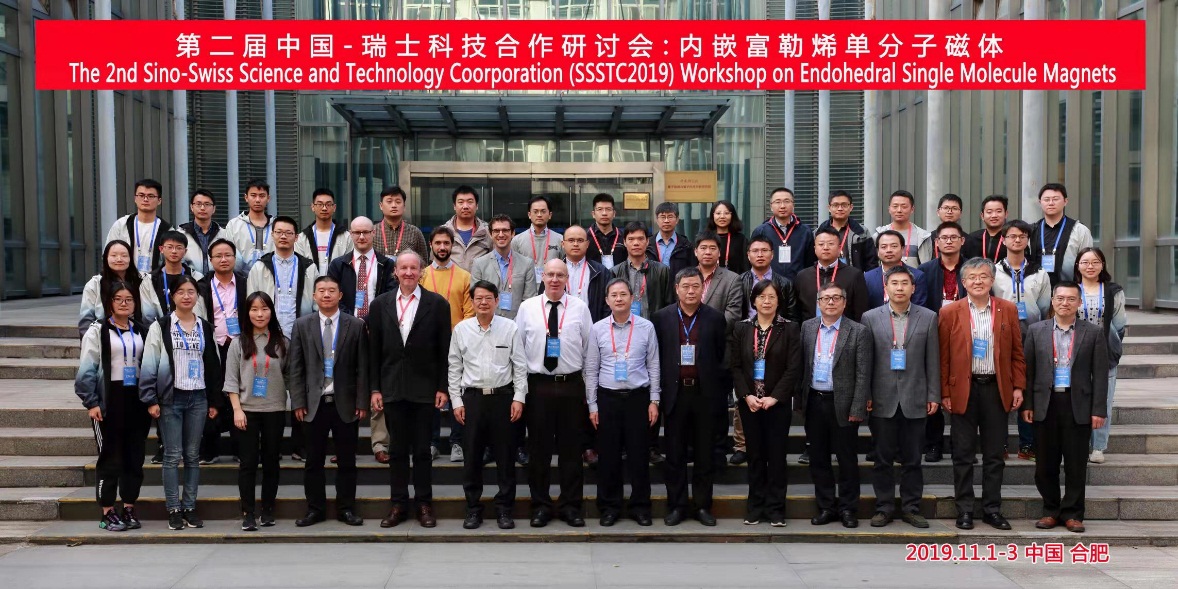 2019年11月1-3日,“第二届中国 — 瑞士科技合作研讨会:内嵌富勒烯单分子磁体”在中国科学技术大学成功召开。本次会议由中国科学技术大学化学与材料科学学院、中国科学院能量转换材料重点实验室、合肥微尺度物质科学国家研究中心联合主办。来自国内外富勒烯以及单分子磁体研究领域的专家、学者及企业研发人员、中国科学技术大学相关师生等80余人参加了会议。本次会议围绕着富勒烯以及单分子磁体的发展及机遇这一主题开展研讨,共安排了20个以院士、杰青和国外教授为主的邀请报告。