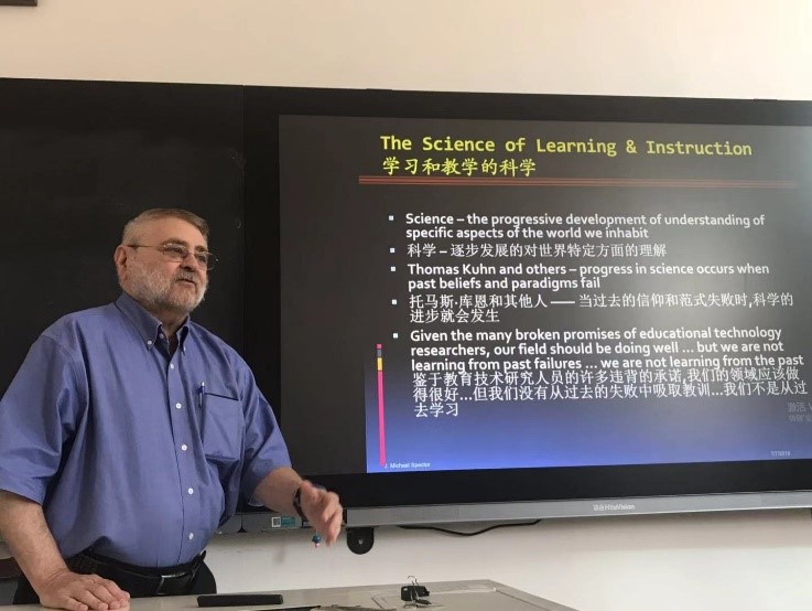 Spector教授现为美国北德克萨斯大学教育技术系教授,曾任美国教育传播与技术协会(AECT)主席,是国际教育技术领域的杰出学者,在教学设计、技术融入教育等领域有出色研究。