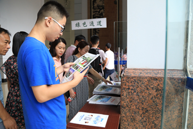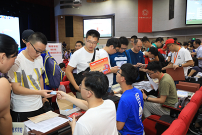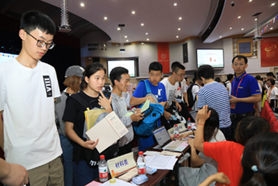 在报到现场,大屏幕上播放着“2019年本科新生报到现场情况”,实时显示各院系以及学校总体报到情况。在院系报到点,新生不仅可以与院系老师见面交流,还能领取校徽、校园一卡通、《本科学习指南》《学生手册》《生活指南》等物品和资料。此外,各院系还为新生准备了各具特色的报到礼包,方便新生快速获知校园生活的方方面面,了解本学科的最新资讯。