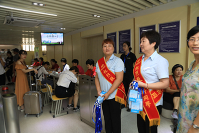 值得一提的是,学生工作部在每年迎新报到时都设置了绿色通道,保证家庭经济困难学生顺利入学,并在今后的学习生活中给予他们持续的关怀和帮助;招生就业处在现场核对新生报到信息;保卫与校园管理处工作人员在校园重要路口引导车辆迅速通行,并在校园内设置引导标识,同时在报到点设置“新生行李义务运送车队”,服务新生及家长;党委宣传部在大礼堂入口处设置了《中国科大报孺子牛特刊》免费赠阅点,供新生和家长取阅;饮食服务集团在大礼堂和宿舍区设有多个绿豆汤供应处;校团委和校学生会为新生准备了特别的新生大礼包:一卡通卡贴、卡套,“Hello USTC”套尺,科大风物定制明信片等。校学生会精心挑选了四本书,每位新生可以随机得到一本以及定制书签,此举旨在鼓励同学们热爱阅读,并通过交换图书,能够迅速熟悉周围同学,早日融入科大环境。种种温馨的安排让新生和家长们称赞不已。