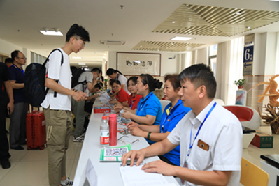 为了更好地服务远道而来的新生和家长,学校进一步简化了入学程序。新生通过现场扫描设置在东区大礼堂内的“2019级本科新生现场报道指南”二维码,查看“需要办理环节”,然后根据查询结果,持录取通知书前往各院系的报到处即可完成报到。