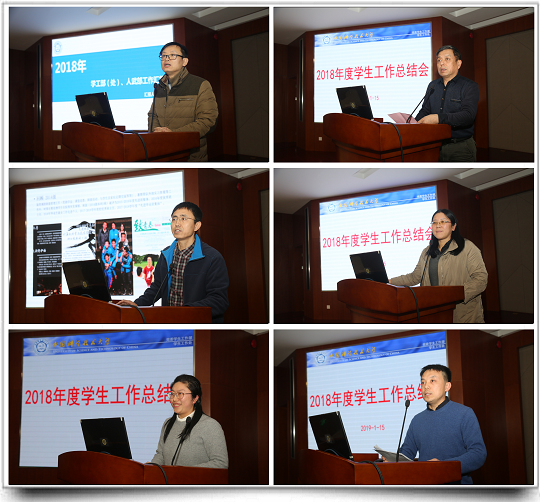 学生工作部(处)部(处)长李峰从思政教育、学生工作队伍建设、安全教育、资助育人、心理健康教育、六个预警与援助体系、宣传工作和信息化建设等方面介绍了学生工作部(处)2018年的主要工作,重点介绍了教学管联动的学业追踪系统和基于大数据的隐形资助两项特色工作,并对部门未来的努力方向进行了展望。