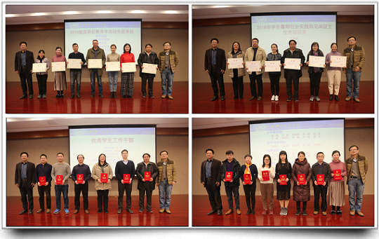 学生工作部(处)副部(处)长赵钢宣读了学校有关表彰决定。2018年3个单位获得诚信教育主题宣传月活动优秀组织奖;4个单位获得第五届“助学筑梦铸人”主题征文活动优秀组织奖;13个单位获得学生暑期社会实践和见闻征文活动“优秀组织奖”;8个单位被评为爱国荣校教育年活动先进单位;63个学生班级被评为2017-2018学年度“先进班集体”;7位老师获得“优秀学生工作干部”称号:5位老师获得“优秀辅导员”称号;82位老师获得“优秀班主任”称号。