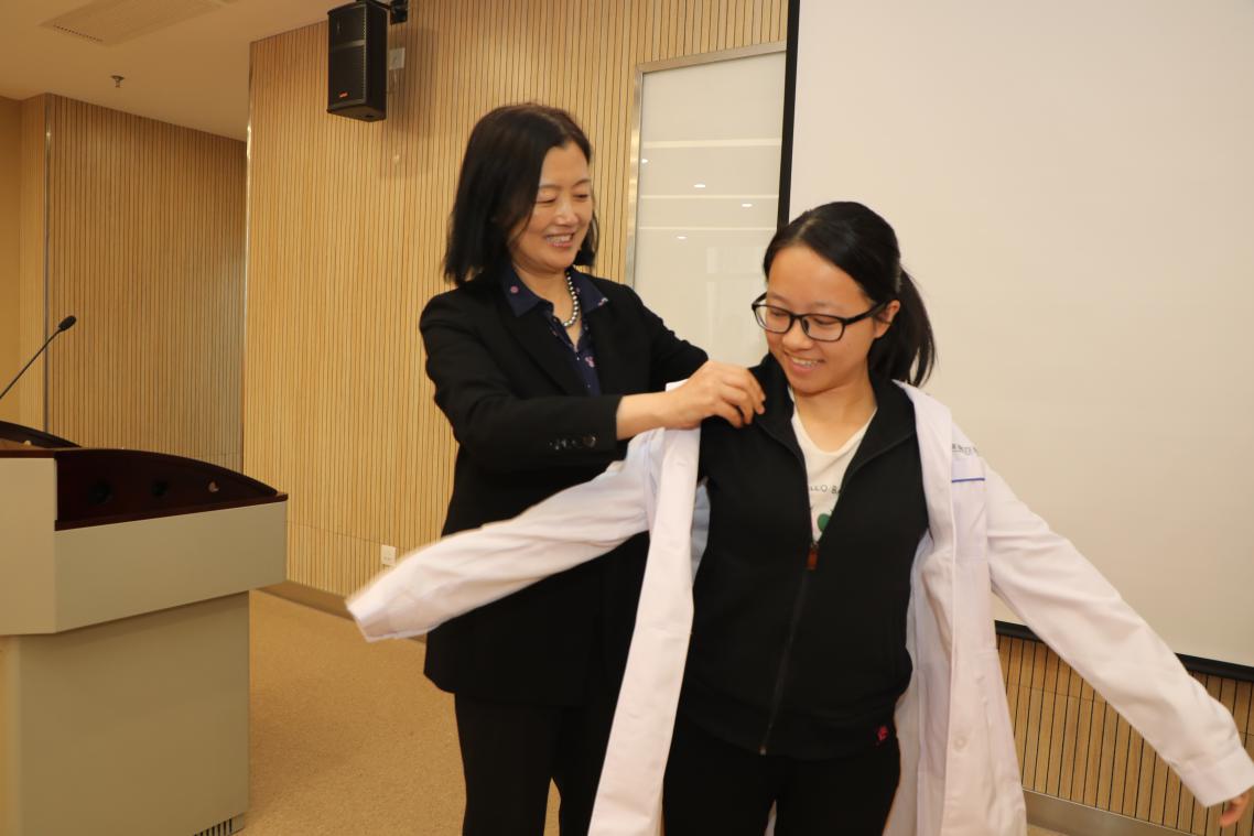 白衣仪式是一个正式、公开并具有象征意义的仪式,也是目前国际上许多医学院校在新生入学时举行的职业精神教育活动,已成为国际上医学院迎新的一种惯例。师长郑重地将白衣赠予学生,标志着医学职业身份的确立、职业生涯的启程,同时鼓舞医学生更好地开启医学人生。通过该仪式,不仅为同学们接触医学、走进医学提供了一个良好的开端,也增加了医学在同学们心中的光荣感和使命感。