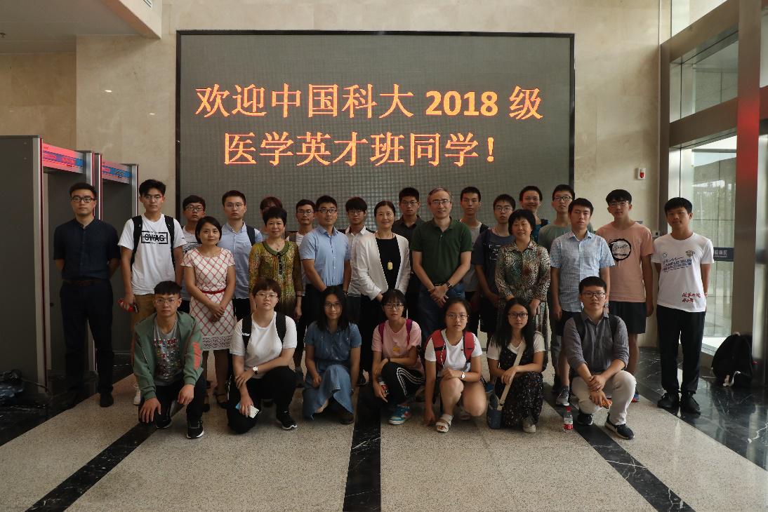 为了贯彻“早临床、多临床、反复临床”的理念,培养 “科大新医学”人才,9月16上午,中国科学技术大学首届医学英才班22名同学赴中国科大附一院(南区)、生命科学与医学部临床医学院参观交流,并召开医学英才班第一次班会。生命科学与医学部执行部长薛天教授、附一院副院长徐晓玲主任医师、教育处主任宋瑰琦、副主任左改珍、生命科学学院教学主管白永胜等参加活动。