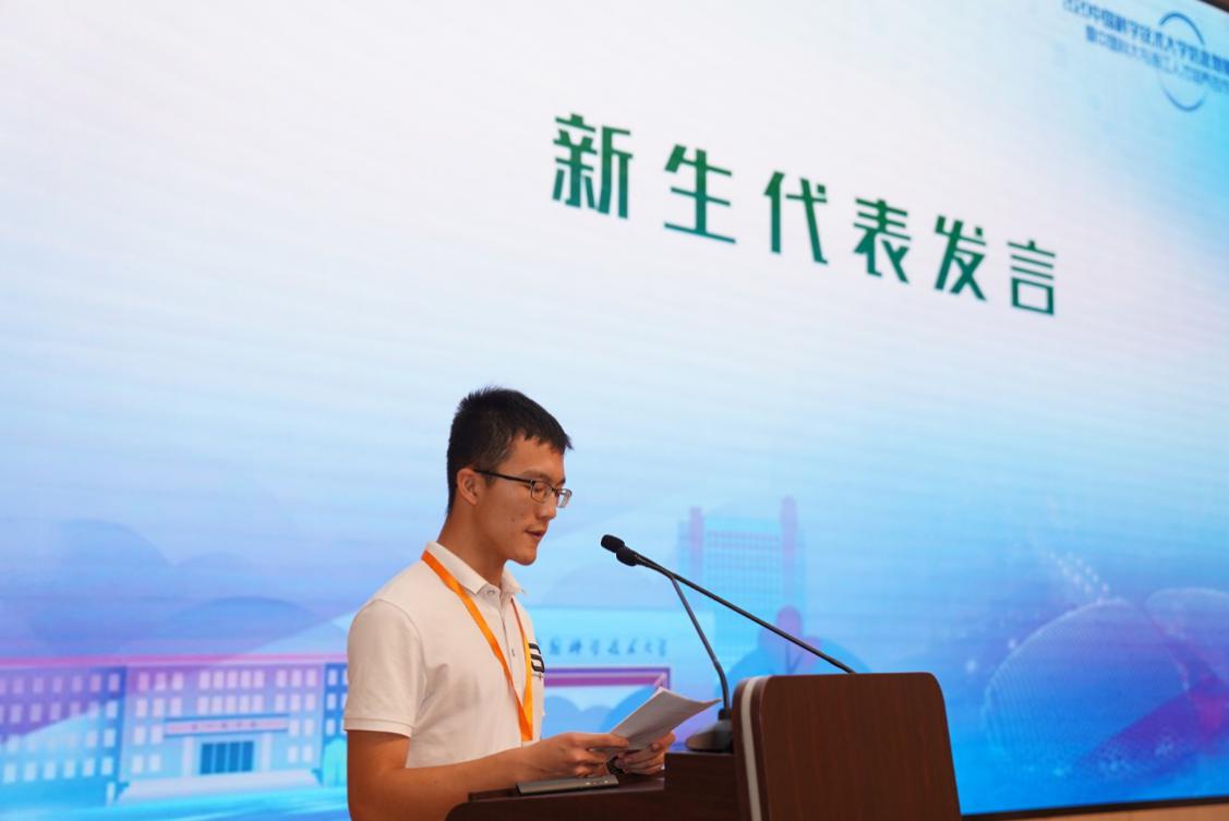 来自浙江省东阳中学的强基计划新生叶逞烜代表参会新生发言,叶逞烜表达了对在中国科大开启大学生活的真心向往,将立志潜心学习、拼搏奋进,不负“第一届强基计划学生”这一神圣而光荣的称号。