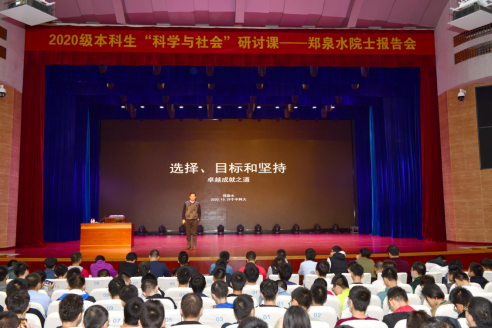 10月29日晚,清华大学教授郑泉水院士应邀为我校2020级本科生带来《选择、目标和坚持——卓越成就之道》主题报告。这是我校本学期“科学与社会”研讨课第三场主题报告,报告会由教务处处长曾长淦教授主持,2020级全体本科生到场聆听。