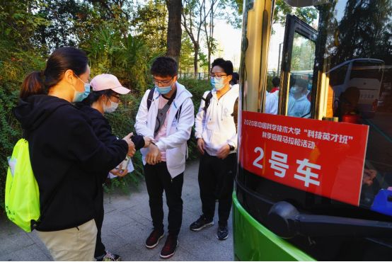早上7点半,全体师生准时到达乘车点,有序排队测量体温、手部消毒后上车就坐,疫情防控工作一刻也不松懈。