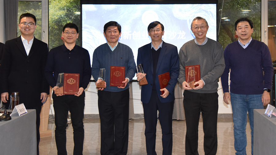 沙龙上,创新创业学院常务副院长朱东杰和中国银行合肥蜀山支行营业部主任唐晨辰分别代表双创学院和中国银行为我校2020年度优秀创新创业导师颁发证书和奖杯。