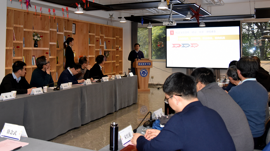 朱东杰详细汇报了创新创业学院成立以来的工作进展和未来工作计划。一年来,创新创业学院以创新的工作思路和创业的奋斗精神,围绕课程体系、师资队伍、实践平台和资源条件等方面全面推进我校创新创业教育体系建设,取得了阶段性进展和显著成效,校内外单位和广大师生对创新创业学院的建设给予了热情支持和广泛参与,我校双创教育的定位、模式和进展也得到了诸多专家和兄弟高校的赞誉。