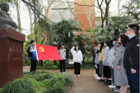 为深入贯彻落实习近平总书记在党史学习教育动员大会上的重要讲话精神,帮助青年学生坚定“知党、敬党、爱党、不忘初心跟党走”的信念,马克思主义学院师生代表于3月31日下午在东校区钱临照先生雕塑前开展“学党史、强信念、跟党走”特别主题团日祭扫活动。马克思主义学院团总支书记刘海龙老师,2019级、2020级硕士研究生代表参加了此次活动。活动由2020级团支部书记张岚主持。