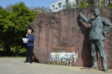 活动由院团委副书记罗坤主持。缅怀活动伊始,全体师生面向钱学森先生雕像低头默哀三分钟,然后依次进献鲜花,以表达敬意和追思。