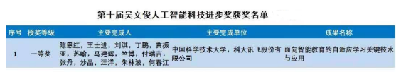 我校陈恩红团队智能教育方向成果获2020年度吴文俊人工智能科技进步一等奖