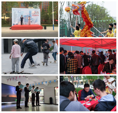 “古老的东方有一群人,他们全都是龙的传人……”,开幕式现场,由学生龙舟协会带来的舞龙表演点燃现场观众的热情。学生主持人俱乐部朗诵《人民万岁》、学生轮滑协会和滑板协会精彩的表演秀、学生古琴协会演奏《高山流水》、学生配音社和炫音社等共有9个学生组织带来各具特色的演出,展现了一场高水平文化盛宴。在中区沿线主干道上,一个个红色帐篷下由各学生组织精心准备的互动展示吸引了众多学生前来参与。党史知识竞答、趣味你画我猜、制作棉花糖、模拟真人CS、街舞、汉服试穿……一个个别具风格的活动形式充分展现了校园浓厚的文化氛围。