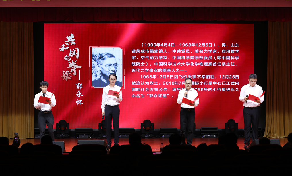 第三篇章,少年班学院《少年中国说》,信息科学技术学院《永远的旗帜,永远的中国梦》,国家同步辐射实验室(核科学技术学院)《苦难辉煌》,环境科学与工程系、生命科学与医学部《党旗颂》,地球与空间科学学院《重温峥嵘复兴路,继往开来奏华章》和先进技术研究院《敢为人先》号召广大同学学史明理、学史增信、学史崇德、学史力行,鼓足奋进新时代的精气神,奏响科大的新时代强音。