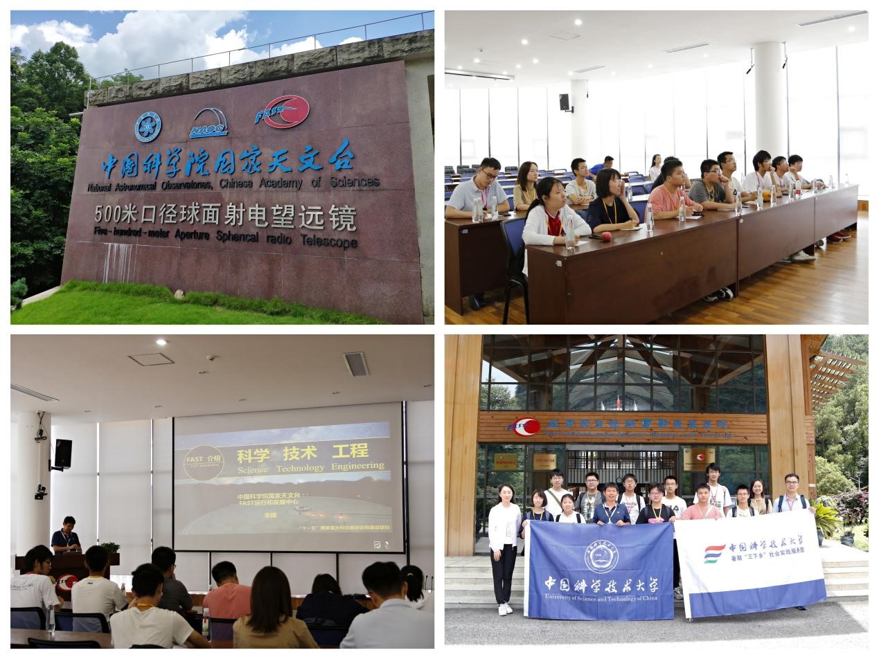 2021年7月,中国科大物理学院学生会暑期社会实践小组赴贵州省,开展以“访大数据产业腾飞,探大科学装置揽天,学长征精神,舞红色旗帜”为主题的调研活动。暑期社会实践小组由物理学院党务秘书方昀达、团委聂诗琦领队,天文学专业大三学生卢纪宇任队长,9名不同年级的本科生参加了活动。