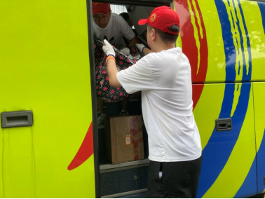在行李运抵装卸地后,党员同志们有条不紊地将小推车上的行李卸下,装入跨校区运输的班车上。看着一辆辆满载行李的班车不断发出,被帮助的同学们的一声声感谢,虽然大家汗流浃背,但每一位党员都乐在其中,为能给同学们提供力所能及的帮助而自豪。