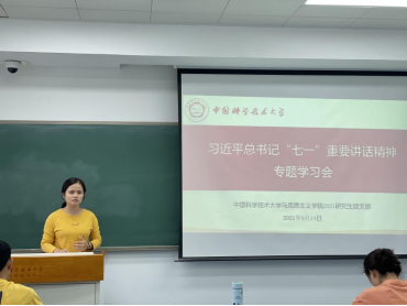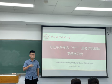 为深入学习贯彻习近平总书记在庆祝中国共产党成立100周年大会上的重要讲话精神,马克思主义学院2021级研究生团支部于9月14日上午在第二教学楼2408教室举办习近平总书记“七一”重要讲话精神专题学习会。2021级全体研究生参加会议,会议由团支部书记查至行主持。
