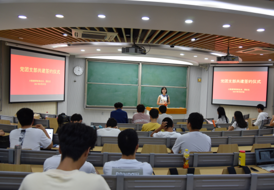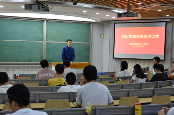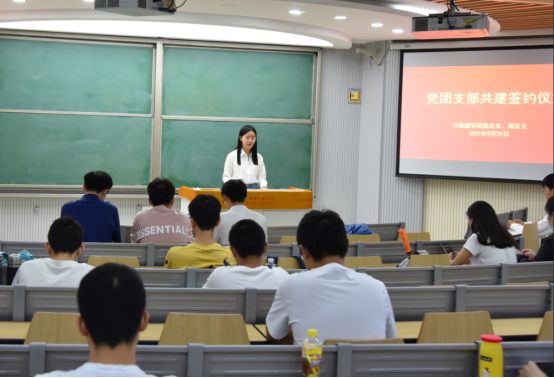 9月29日下午,大数据学院西区第一党支部和三个本科生团支部在西区3A112教室举行党团支部共建签约仪式,正式拉开了学院党团支部共建的序幕。支部党员、积极分子、各本科生团支部支委及部分同学参加了活动。大数据学院党总支常务副书记阳思和党务秘书曹倩出席仪式。