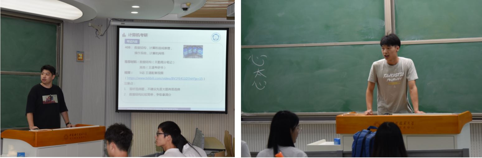 最后,西区第一党支部的两位党员岳立楠和陈龙为本科生同学们带来了一场考研经验分享讲座,这也是学院开展的又一项“我为师生办实事”活动。岳立楠就备考资料、学习方法等做了详细介绍;陈龙则结合自己的心路历程,重点讲解了如何用正确平和的心态准备考研。活动现场还开展了热烈的互动,几位党员均是知无不言言无不尽,并留下联系方式表示后续可以随时交流。