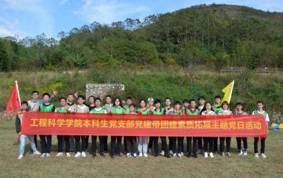 为大力弘扬团结协作、艰苦奋斗的革命精神和优良传统,切实增强学院党团组织的生机和活力,促进学生全面健康发展,增进支部成员和团员青年之间的交流,2021年10月17日,工程科学学院本科生党支部联合院学生会,在院团委书记、本科生党支部副书记王储带领下,共同乘车前往青阳山训练基地开展了党建带团建素质拓展主题党日活动。