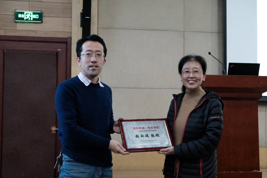 最后,系副主任刘贤伟代表环境科学与工程系党总支为张淑娟送上了“成长对话,校友领航”荣誉证书,交流会在一片欢快的掌声中结束。