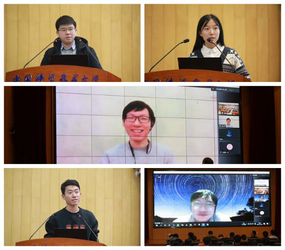 2018级本科生彭牧原、杨雯淇、王正瑞龙、孙士甲、王铠泽五位同学做分享。今年暑假,他们分别在东京大学、华盛顿大学、美因兹大学、加利福尼亚大学伯克利分校、洛桑联邦理工学院等高校进行线上或线下暑研。他们介绍了暑期所做的科研工作、国外生活经历,并分享了暑期科研、签证准备等经验,帮助同学们了解如何寻找合适的暑研机会,怎样为暑研做准备,并细致地提醒同学们暑研前后和期间需要注意的问题。