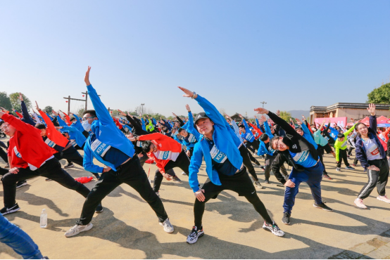 健身教练带领大家做完热身运动后,随着开跑指令的发出,全体师生,迈开步伐,尽情奔跑。