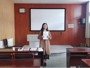 韦文静重点研读了《中央苏区史》《中央苏区的初步形成》《中央苏区的土地革命》。她介绍了中央苏区的形成及土地革命的过程,并号召同学们积极学习这段历史,从而继承和发扬苏区精神,从中汲取强大的精神力量。