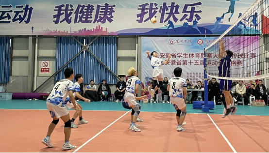 12月8日,我校男排队和女排队同时进行决赛。我校男排队对战的是安徽中医药大学男排队。队员们迅速进入状态,开局领先,获得首局胜利。随后,安中医发起猛烈攻势,力量大,节奏快,我校队员因多日高强度比赛体能开始下降,连失两局。比赛来到第四局,我校队员总结前两局的失误,重新调整状态,奋力拼搏,多次打出精彩的拦网,限制对方的进攻,拿下第四局的胜利。然而,由于我队队员在体能与气势上不敌对手,最终以三分之差与冠军失之交臂。我校女排队对战合肥工业大学女排队。我校队伍开局处于微弱劣势,但队员们相互鼓励,把握每一次发球和攻球的机会,比分紧追对手,最终赶超,拿下第一局的胜利。第二局双方比分相互赶超,比赛十分焦灼,可惜的是对手拿下了第二局的胜利。由于我方队员体力逐渐不支,出现失误,在随后两局中惜败。我校女排队荣获亚军。