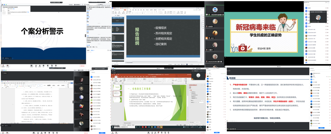 做好疫情防控是当前重中之重工作。4月9日—13日,软件学院统一部署,组织全院2019级-2021级三个年级共33个班级,召开了“疫情防控安全教育”专题主题班会,共1650余名学生参加了学习,包括2018级及以前的延期毕业同学插班学习。做到学院所有学生“管控全覆盖,管理无死角”,并提交主题班会学习教育情况书面材料。切实将疫情防控管理落在实处,筑牢防疫“防火墙”。