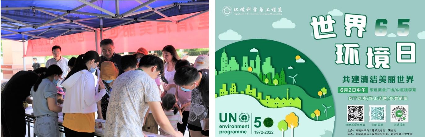6月5日是第51个世界环境日,围绕这一主题,环境系党总支策划组织了“共建清洁美丽世界——世界环境日活动周”系列活动。此次活动线上线下同步进行,面向全校师生开放,线上活动有环保知识竞答、科普报告视频赏析,线下活动有塑战塑决、塑料瓶回收交换、环保拼图等互动小游戏,吸引了广大师生积极参与,进一步宣传了环境科学与工程专业,提高了大家的环保意识,号召大家积极行动起来,成为蓝天、碧水和净土的守护者,成为“绿水青山就是金山银山”生态发展理念的践行者。