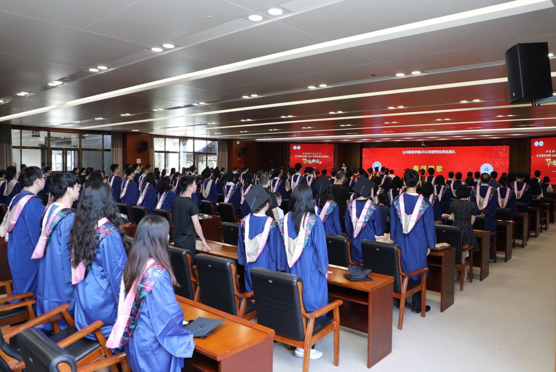 典礼还进行了文艺表演。2021级法律硕士班林嫄欣、陈晨两位同学分别为大家带来精彩独唱《清白之年》和《这世界那么多人》;接着由2021级公共管理法学班带来方言朗诵节目,朗诵者通过一幕幕的细节,感怀母校,祝福母校!有趣的歌曲串烧曲目,寄托着大家对过往的追忆、对当下的留恋,以及对未来的期许!最后全体师生一起合唱《送别》,婉转悠扬的旋律中满怀同窗之间依依惜别之情!
