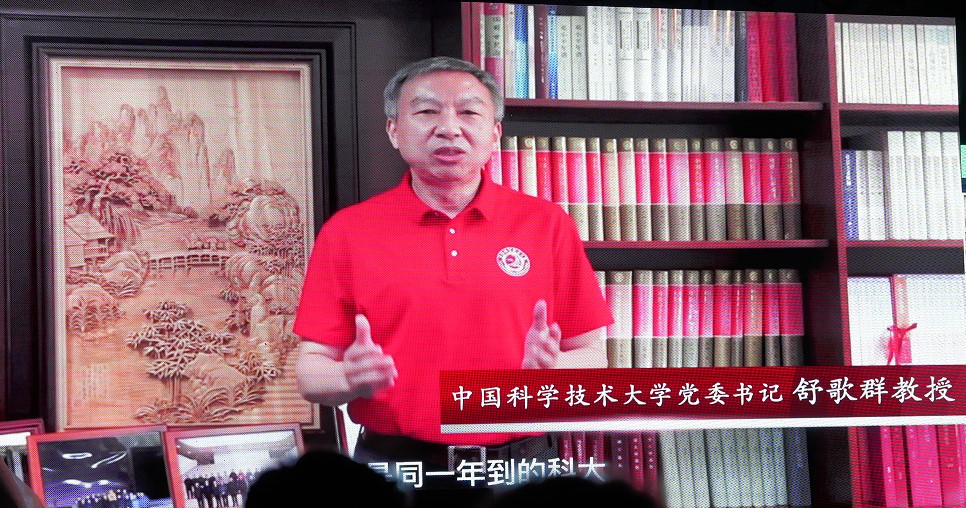 党委书记舒歌群在第一篇章开始以视频方式向圆满完成学业、即将开启人生新征程的同学们表示热烈祝贺,希望同学们始终秉承钱学森先生工程科学的思想,牢记习近平总书记考察科大时的殷殷嘱咐,“年轻人要心无旁骛,学成文武艺,报效祖国和人民,报效中华民族!”。他还倾情演唱了一首赵雷的《成都》,对部分歌词进行了一点改编,以此寄语毕业生“在红专并进的校园里,我从未忘记你,科大带不走的只有你”“墨子悟空闪耀星空,永恒东风伴我左右”,表达了对毕业生的殷切期待,并祝同学们前程似锦,牢记“科大永远伴你左右”。