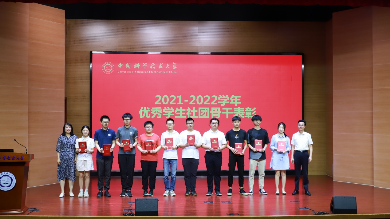 校团委钱悦菡老师宣读《关于表彰2021-2022学年优秀学生社团骨干的决定》和《关于表彰2021-2022学年优秀学生社团指导教师的决定》,万洪英、蒋家杰共同为优秀学生社团骨干代表颁发荣誉证书,傅尧为优秀指导教师代表颁发荣誉证书。