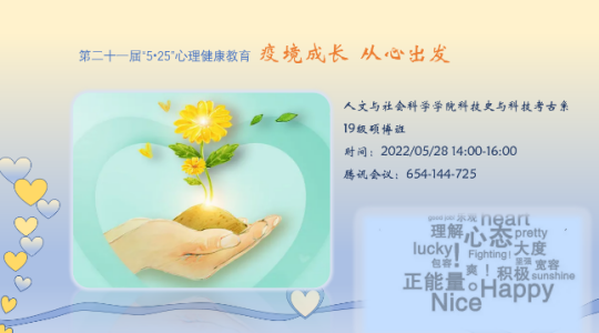 科技史与科技考古系2019级硕博研究生班举办了主题为“疫境成长,从心出发”的心理健康教育活动。活动通过组织观看心理健康教育情景剧,分析剧中人物面对疫情的态度行为,引导大家掌握了解接纳自我、与他人相处、调整控制自身情绪和心态等的方式方法,珍惜校园时光,帮助大家更好地调整心理状态。同时也鼓励大家在学习生活中遇到心理困惑时,积极向学院心理健康工作站的老师咨询。