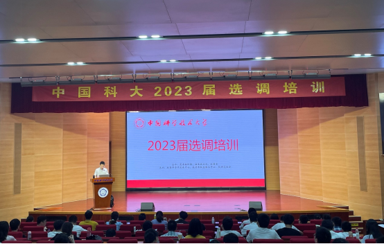 近日,校党委组织部、招生就业处和校团委联合举办的中国科大2023届选调培训在东区水上报告厅开班。意向参加选调的1000余名同学以线下面授同步线上直播的方式参与了持续六天的培训。培训由校团委学生兼职副书记赵宏泽主持。