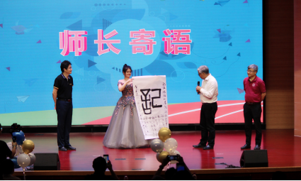 晚会的第三篇章迎来了“师长寄语”环节,艺术与科学研究中心主任陈履生、科技传播系执行主任周荣庭、科技史与科技考古系执行主任钮卫星老师分别为毕业生送上祝福。陈履生先生为2022届毕业生特别准备了一副书法作品,表达他对同学们的深切祝愿,陈老师勉励同学们:记住录取的喜悦,记住学习的清苦,记住奋斗的艰辛,记住事业的接续,记住使命的担当,记住成就的高光,记住科大。钮卫星老师希望同学们未来无论遇到什么困难或身处怎样的境遇,都要记得学校永远是大家的心灵港湾,随时欢迎同学们回家看看!周荣庭老师寄语毕业生们:要有家国情怀,要坚持终身学习,要勇于创新,要努力做到协同发展,笃行不怠,努力闯出更广阔的天地。
