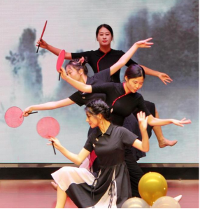 往事回味,不过是袖摆一挥间;我锁着眉,最是相思断人肠。古典舞《燕无歇+芒种》拉开晚会的序幕。衣袂翩翩,红扇如蝶,为大家呈现了一场美轮美奂的国风盛宴。由人文学院14位院部老师共同带来的诗歌朗诵《逐梦新征程,青春正当时》,声音浑厚,铿锵有力,满怀老师们对毕业生的殷切期望和诚挚祝福。