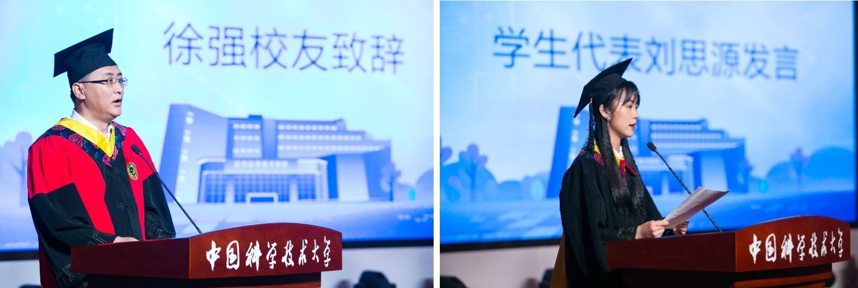 学生代表刘思源也发表了自己的毕业感想,她回顾了自己在科大四年的发展历程。四年的科大生活给予了同学们扎实的知识、健康的体魄和健全的人格,我们既能在学校里攻坚克难;又能回馈社会,关心民生。感谢科大给予我们的发展平台,四年的大学生活将会是我们一生的财富。