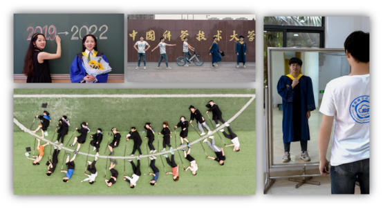毕业季,用光影记录少年成长的足迹。在“毕业纪念系列活动|创意拍照”的镜头下,同学们用一张张创意毕业照定格匆匆岁月的难忘瞬间和校园的美好记忆。我们回眸三年前的自己,告别昔日的懵懂,珍藏曾经的回忆,期待再次的成长;我们向科学高峰攀登的旅途也曾