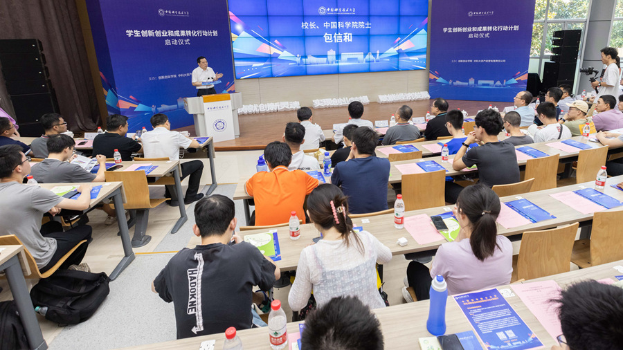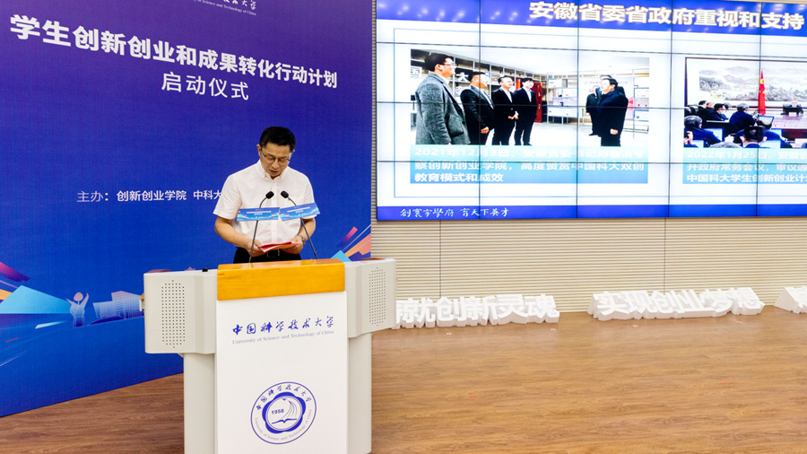 仪式上,包信和宣布“行动计划”正式启动并发表了热情洋溢的讲话。他指出,我校行动计划以“铸就创新灵魂,实现创业梦想,赋能经济发展”为目标,将通过实施“雏鹰计划”、“雄鹰计划”和“鲲鹏计划”,培养全校师生、校友的创新创业意识和能力,助力安徽省“三地一区”建设。同时,行动计划将向在皖高校和中科院系统开放,并与“科大硅谷”建设、科技商学院建设有机结合、一体推进。希望科大师生、校友肩负起时代责任,赓续科大人的创新基因,尊重队友、尊重知识、尊重创新,不辜负安徽人民的一片心意。