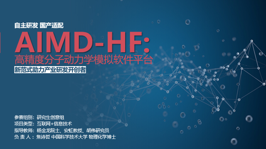 AIMD-HF,即杂化泛函第一性原理分子动力学模拟软件平台,通过领先的软件算法加速技术及国内自主研发的加速卡芯片得到了卓越的性能,并且团队致力于一改传统做实验的试错性研发模式,通过计算机模拟技术,辅助设计药物分子、新型电池材料等,将大大提高研发效率、节省物料、人力等资源,覆盖新材料、生物医药、新能源等产业。
