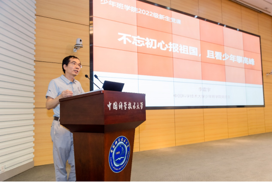学院党总支书记李震宇以《不忘初心报祖国,且看少年攀高峰》为题讲专题党课。他向同学们介绍了少年班创办背景和40多年来的光辉发展历程。他指出,作为创新人才的培养基地和教育改革的“试验田”,40多年来,少年班办学得到了党和国家领导人的大力支持和推动,也培养了一大批优秀的毕业生。他希望同学们提高道德修养、厚植家国情怀,掌握知识、增强本领,强健体魄、提高人文艺术修养,崇尚劳动美德、弘扬劳动精神,牢记习近平总书记嘱托,争当德智体美劳全面发展的栋梁之才。