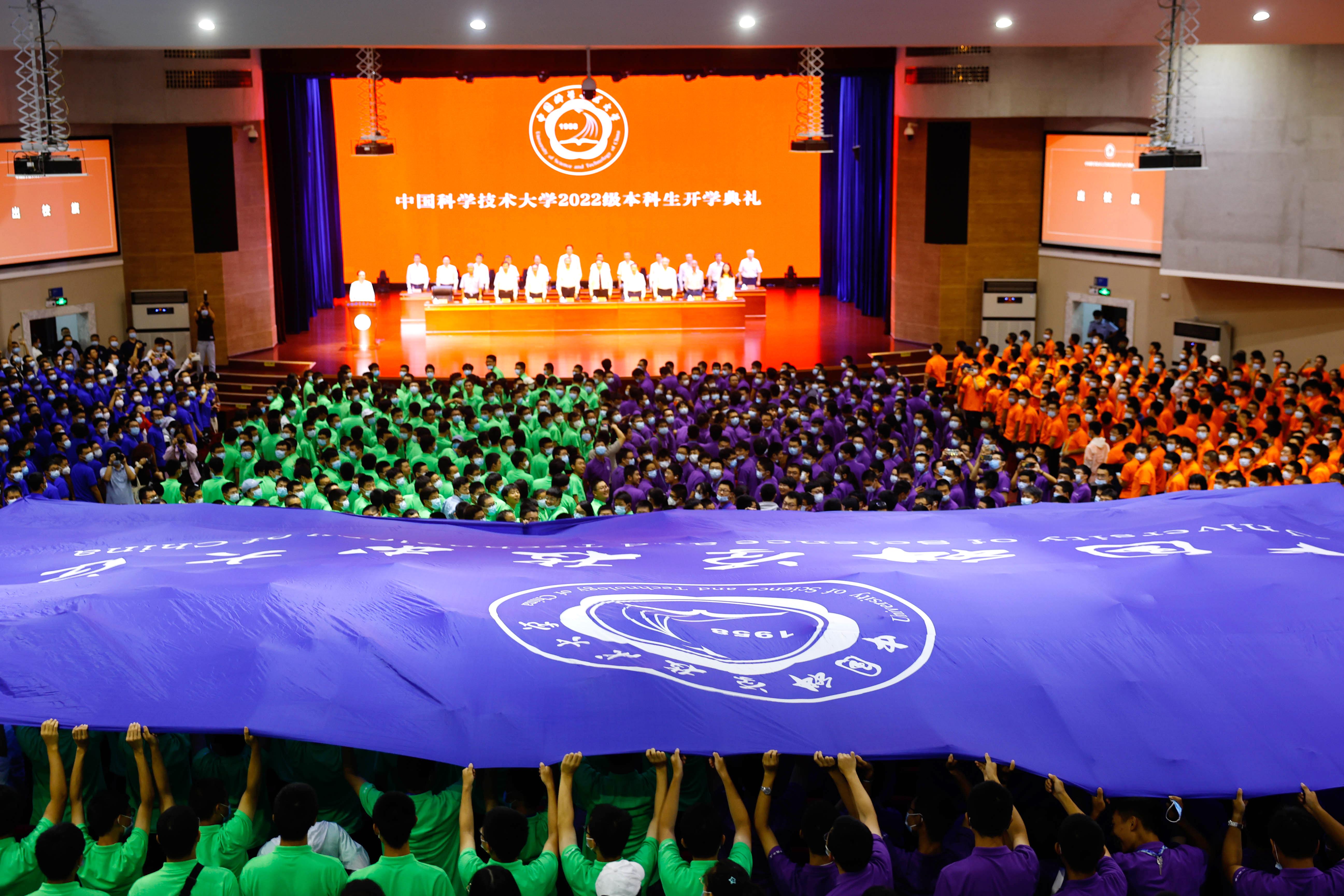 九月金秋迎风起,九月硕果满枝红。九月的科大校园,朝气蓬勃,青春飞扬。9月3日,中国科学技术大学2022级本科新生开学典礼在学校东区大礼堂举行。校领导舒歌群、包信和、杨金龙、褚家如、邓建松、薛天,校友代表、清华大学教授饶子和院士,书院总院长程艺教授,相关学院负责人,教师代表出席开学典礼并在主席台就座。机关有关部门负责人、2022级全体本科生新生及班主任参加开学典礼。校党委副书记傅尧主持开学典礼。