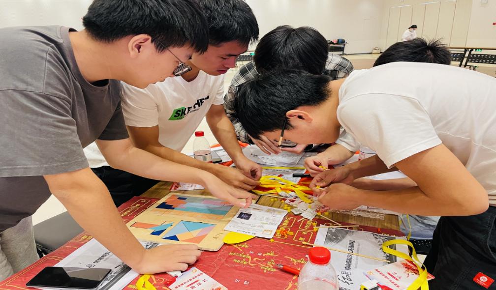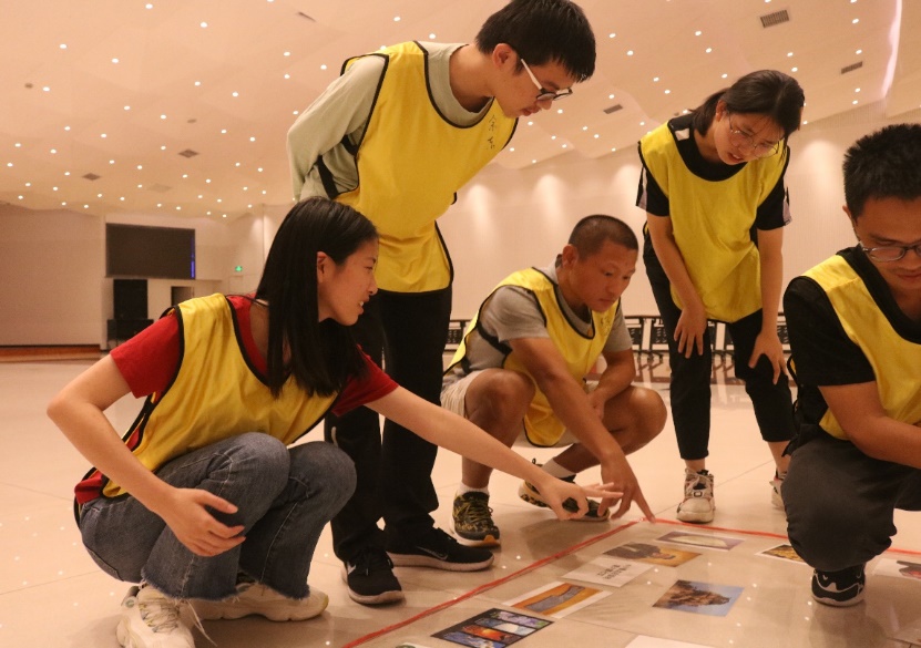 下午的团建活动主要聚焦于发挥同学们的团队协作能力,活动内容有“破解密码”“无敌坦克”和“超音速团队”。在经过简短的活动介绍和预热之后,各组用投票或者毛遂自荐的方式选出队长带领团队展开活动。战场模拟在规定时间内破译谍情密码、躲避敌机轰炸;“无敌坦克”对决赛考验队长的运筹帷幄,更考验“战士们”的默契配合度;“超音速团队战”更是需要队长准确判断战局以及全员快速的行动力。各组奋勇前进,充分发扬了红军长征中的团结协作和互助精神。