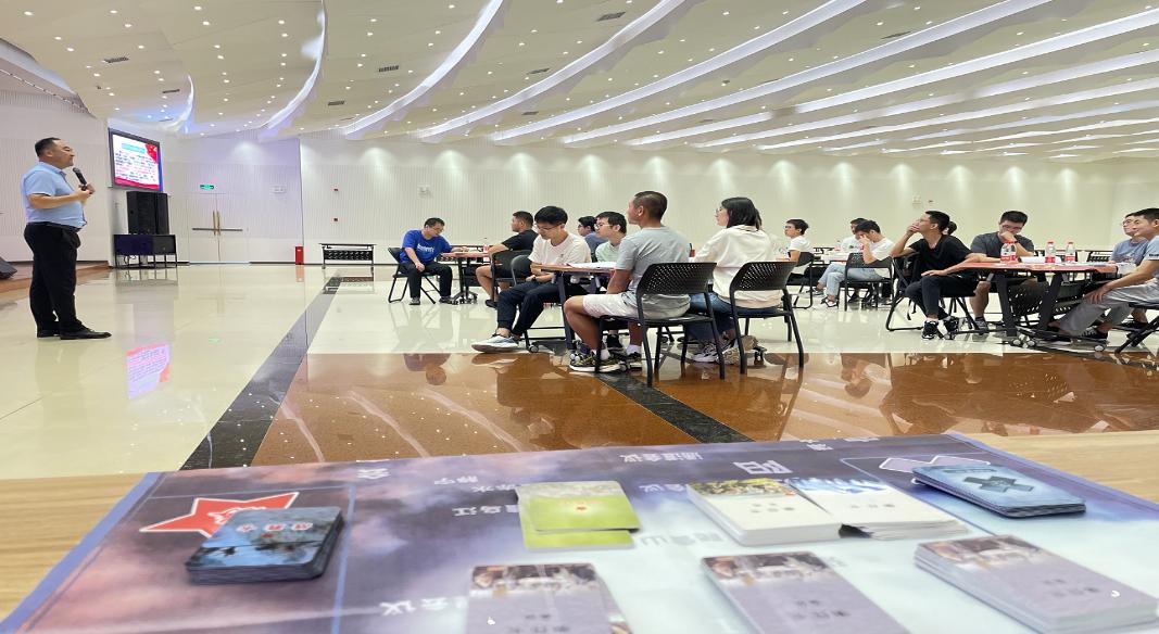 二万五千里长征是中国共产党和红军谱写的壮丽史诗,是中华民族伟大复兴历史进程中的巍峨丰碑。关于长征壮举和长征精神,人们从未停止过回望,更未放弃过追寻,它不断激励着大家开拓进取。在相关教育咨询公司“红色沙盘模拟课程”培训老师指导下,同学们开启了追寻革命足迹、重走长征路的沙盘模拟体验活动。上午的活动环节是沙盘模拟课程导入和长征故事研讨。活动以指导老师关于长征的精彩讲演开始,随后播放短片“血战湘江”“巧渡金沙江”“飞夺泸定桥”“直罗镇战役”等等,一起回顾那段峥嵘岁月里的一个个片段。短片观摩结束后,每个“作战小组”的代表分享自己对长征精神的理解,有的同学讲述了自己曾经游览泸定桥的感受;有熟悉历史的同学将中国史上的著名远征“蒙古灭大理之战”和红军长征通过行军路线联系起来……,娓娓道来中又一次重燃了红色火种。紧接着,活动选取了红军长征过程中“激战独树镇”“血战湘江”“强渡乌江”“四渡赤水”等重大事件,通过短片和沙盘画面以及任务设定实现情景重现。不同“作战小组”成员共同化身红军战士,依据作战规则,以团队协作来克服困难,对抗“敌军”。沙盘模拟演练环环相扣,现场氛围紧张刺激,参与者们仿若置身于那个战火纷飞的岁月,在感受革命艰难曲折的同时,党史知识也深深入脑入心。